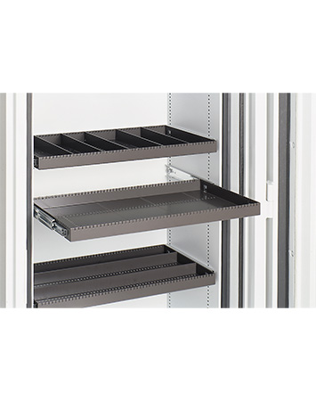 Auszugsplatte auf Teleskopschiene zur Aufnahme von magnetischen und optischen Datenträger