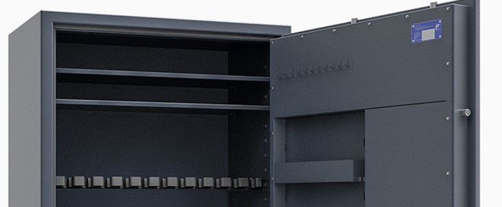 Außenmaße HxBxT: 1600x850x500 mm Innenmaße HxBxT: 1550x800x390 mm Schloss: Elektronisches Zahlenschloss Stellar ML Basic Waffenhalter: 26 (14 x 55 mm / 12 x 65 mm) Gewicht: 285 kg (Türen herausnehmbar. Gewichtsverteilung ca. 1/3 Tür - 2/3 Korpus) Lackierung: RAL 7024, graphitgrau Einbruchschutz: Grad 1 nach EN 1143-1